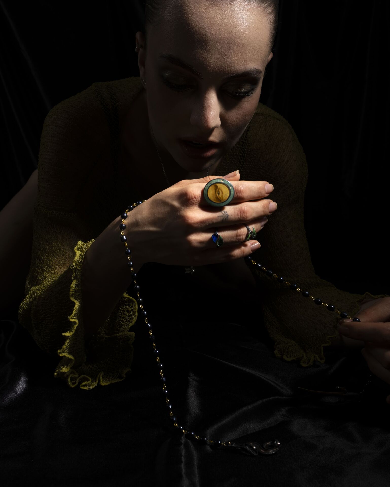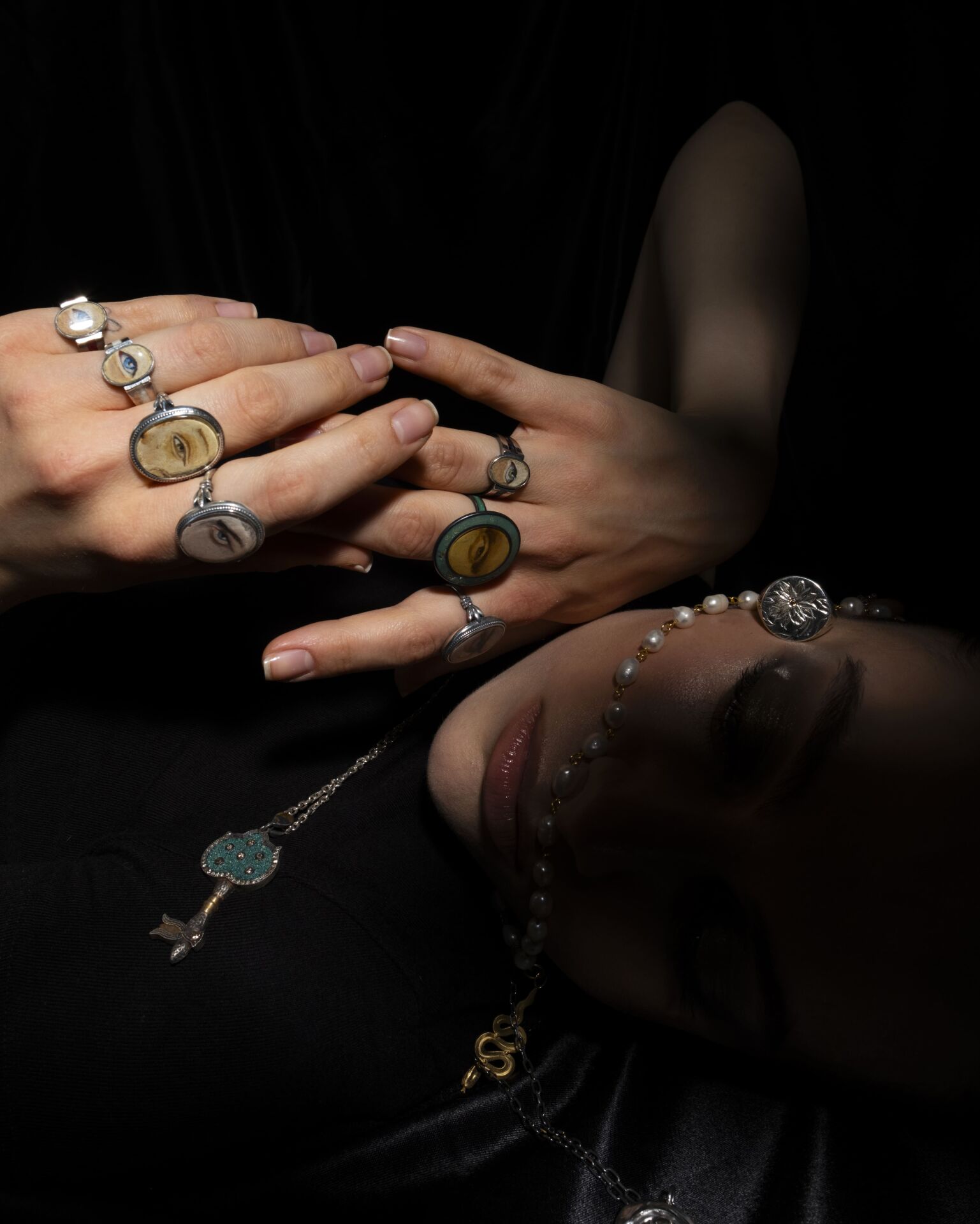 Her detayında el emeği olan bu parça, geleneksel tekniklerle, 925 ayar gümüş ve yağlı boya kullanılarak elde üretildi.